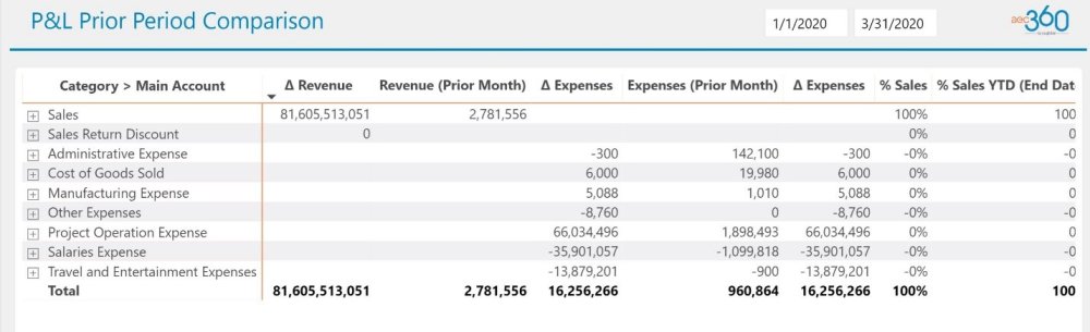 Here user can drill through for account to see the further details by Revenue, Expense and Balance sheet for the selected account. Here we also provided the P&L comparison in P&L Prior Period Comparison tab.