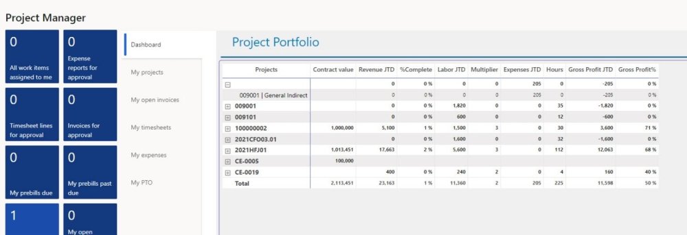 After the above embedded configurations are complete, go to Workspaces > Project Manager and the Dashboard will appear. Project managers must be assigned to projects to be able to see the list in the My projects tab.