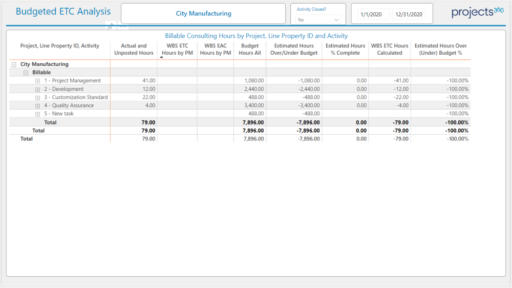 Here uses can see the budgeted hours like actual and unposted hours ,ETC/EAC hours and estimated hours over/under budget in various hierarches (Project, Line Property ID, Activity)