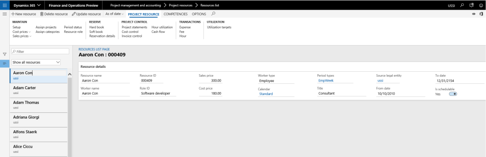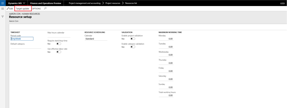 Go to Project management and accounting > Projects resources > Resource lists > Setup > Target update.