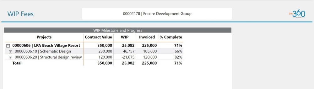 Consist of milestone and progress including contract value, Invoice amount and % completed.