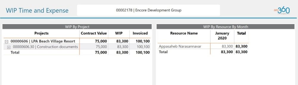 This tab provides the details of WIP by Project along with contract value, Invoice amount. Resource wise WIP details by Month.
