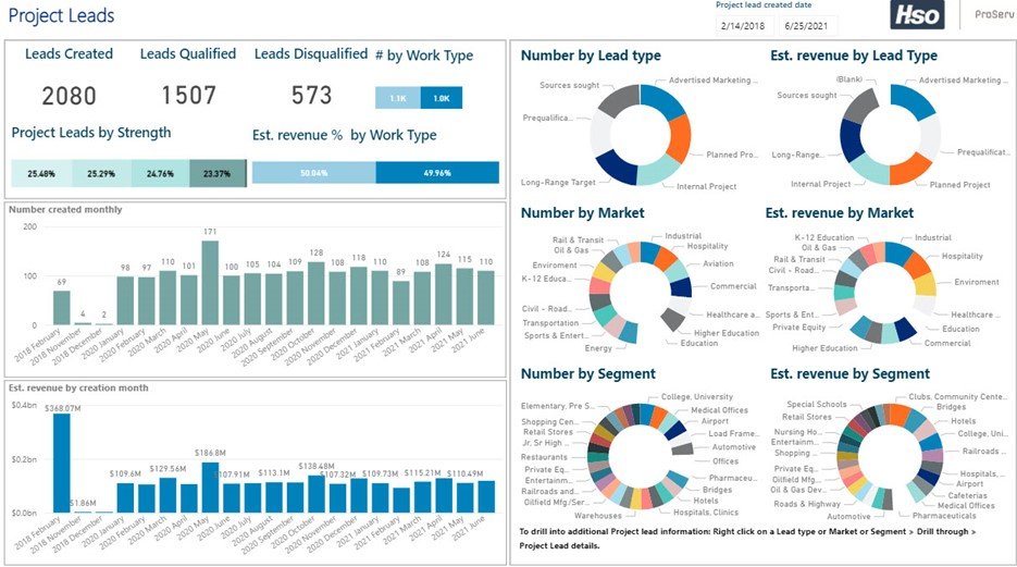 HSO ProServ has developed an optional CE content pack that AEC360 customers can embedded in their D365CE environment or deploy to a PowerBI.com workspace. The CE-based content pack report is designed only for AEC360 clients that leverage D365CE. Customers can modify the content pack based on modifications made in their D365CE environment.
