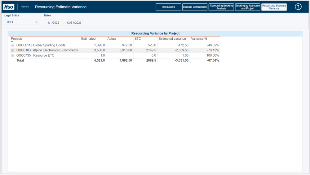 Resourcing Estimate Variance: It provides the analysis on the deviation between resource forecast and actual values and how well forecast values are aligned with real outcomes.