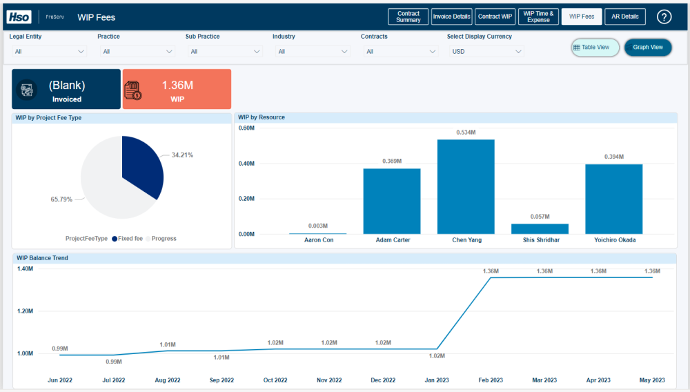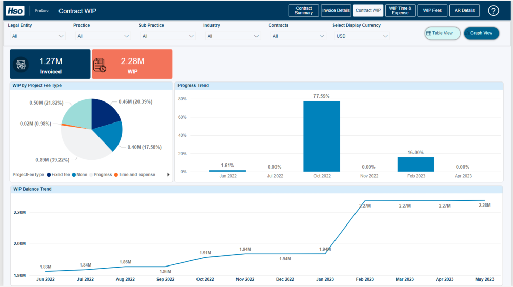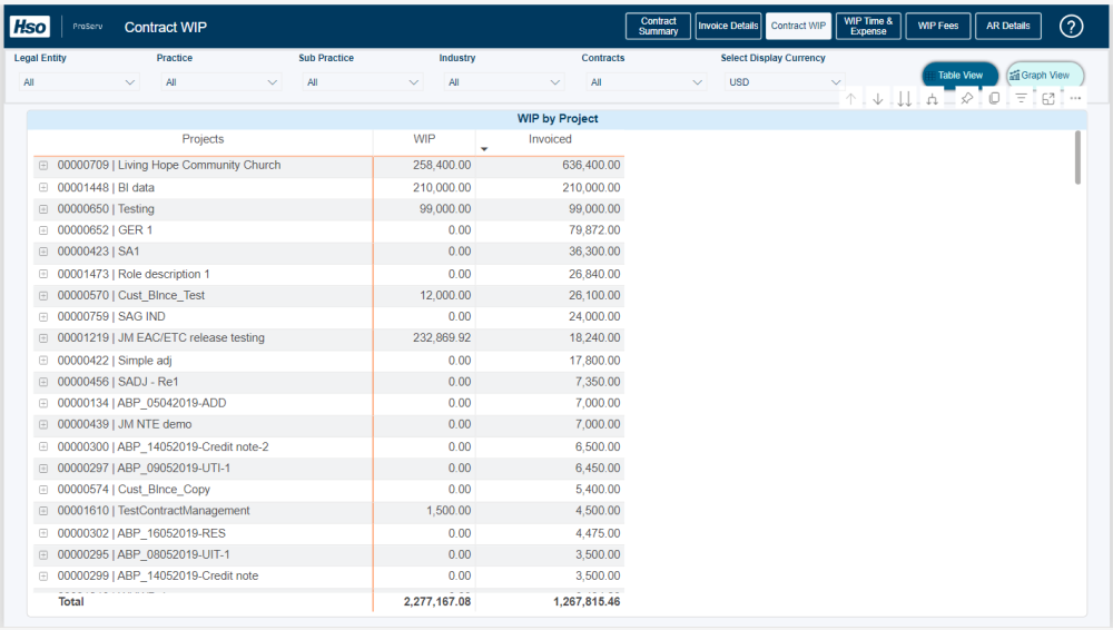 Table view of Contract WIP consist of detailed information of invoiced amount by project and amount which are in WIP.