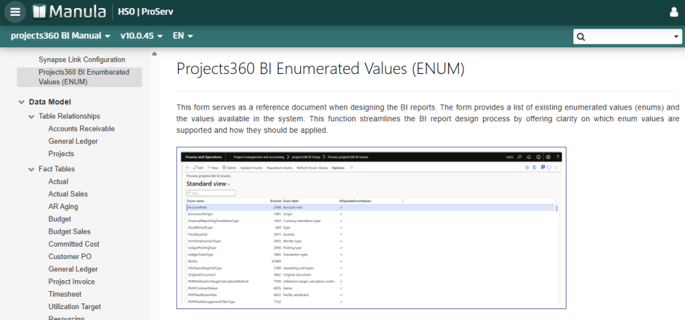 This release introduces documented enumerated values used across Projects360 to streamline BI report design. This enhancement provides clarity on which enum values are supported and how they should be applied in reporting logic. The Projects360 BI Enumerated Values can be found in the Technical Guide section of this manual.