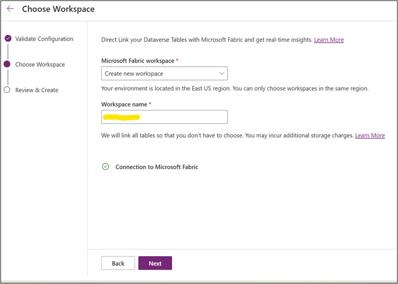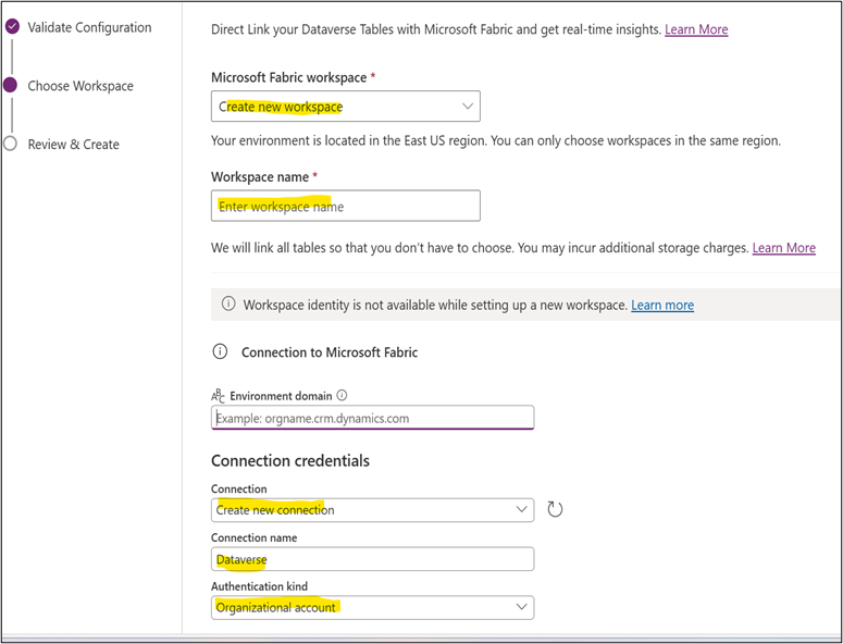 Create a Fabric Link.